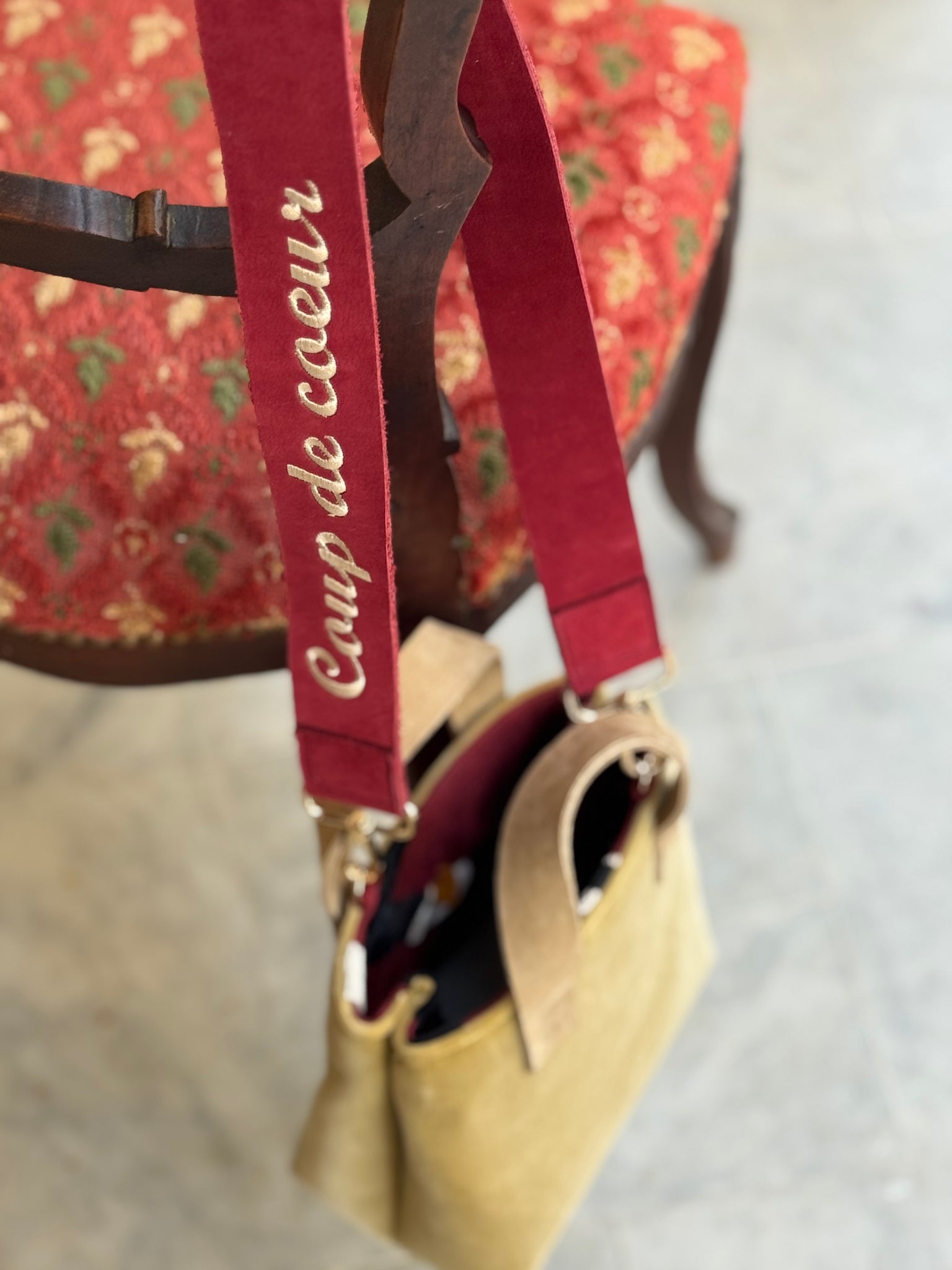 The handle is in repurposed genuine leather.